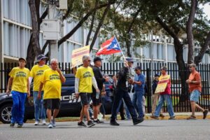 Realizaron una manifestación, frente a La Fortaleza, que coincidió con una reunión de Jenniffer González