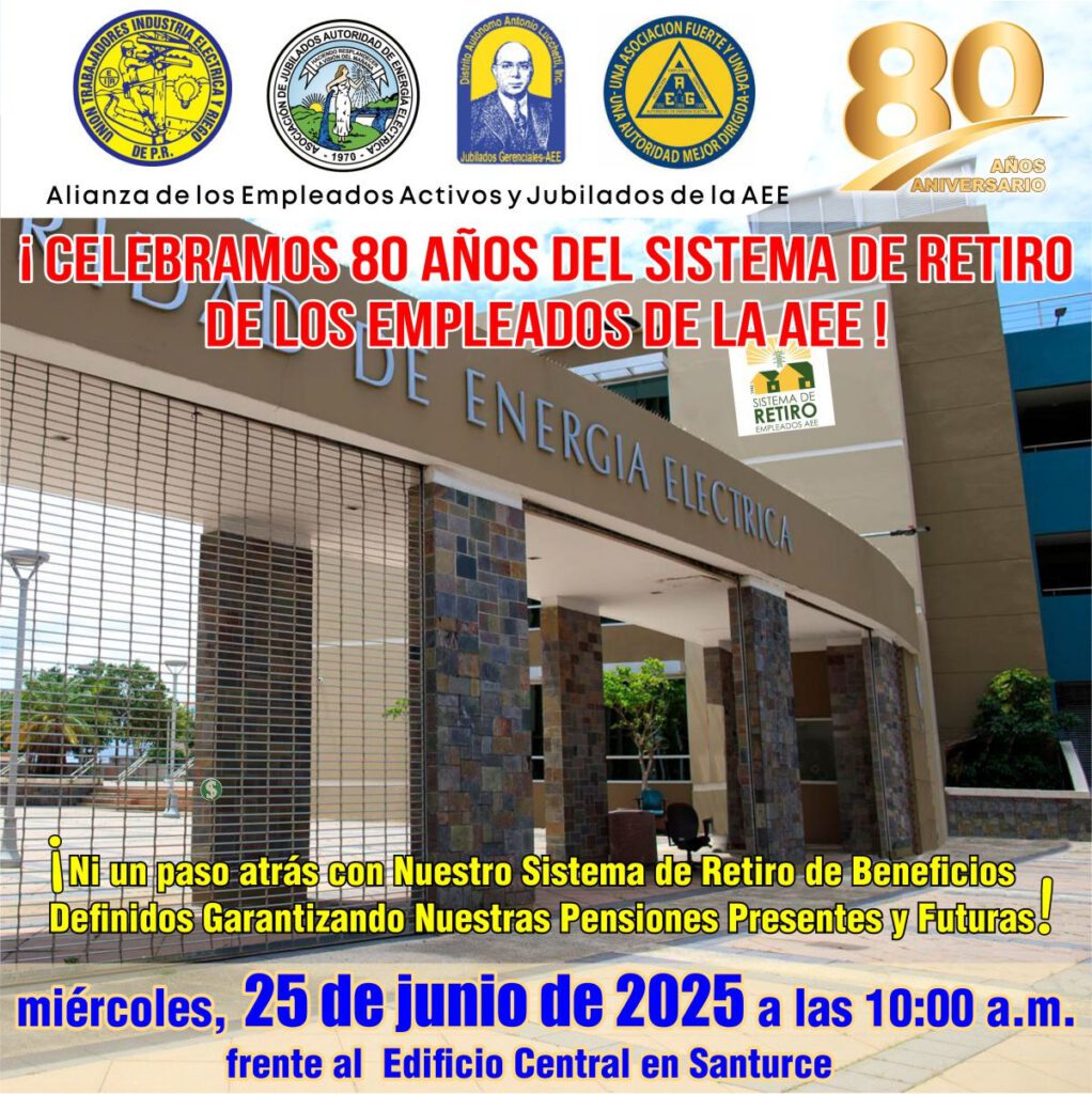 La Alianza de los Empleados Activos y Jubilados de la AEE se mantiene firme: ¡Ni un paso atrás Con Nuestro Sistema de Retiro de Beneficios Definidos Garantizando Nuestras Pensiones Presentes y Futuras❗️